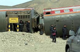 當(dāng)日2時(shí)05分,由烏魯木齊開(kāi)往新疆南部城市阿克蘇的5807次列車運(yùn)行至南疆鐵路珍珠泉至紅山渠站間42公里+300米處時(shí),因瞬間風(fēng)力達(dá)到13級(jí),造成該次列車機(jī)后9至19位車輛脫軌,造成三名旅客死亡,兩名旅客重傷,32名旅客輕傷,南疆鐵路被迫中斷行車。目前,救援工作基本結(jié)束,1100余名旅客分別乘坐救援列車和大轎車轉(zhuǎn)往目的地,受傷人員也被及時(shí)送到事發(fā)地附近的吐魯番和托克遜醫(yī)院進(jìn)行救治。 |