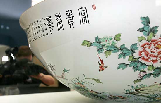 26日,一名電視記者在俄羅斯首都莫斯科舉行的媒體預展上拍攝景德鎮精品瓷器。3月27日,由江西承辦的“白色的金子——中國瓷器精品展”在莫斯科正式開展。這一展覽是俄羅斯舉辦的“中國年”文化展覽之一。