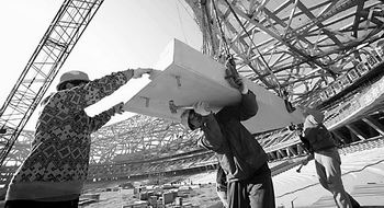 國(guó)家體育場(chǎng)內(nèi),工人正在緊張施工