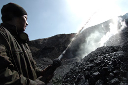 4月8日,在烏魯木齊縣松樹頭煤田火區(qū),天山大峽谷公司的一名工人正在用水“滅火”。據(jù)介紹,煤田滅火是一項(xiàng)危險(xiǎn)大、難度很高的工作,需要一整套的工藝,這種“灑水”滅火根本無濟(jì)于事。