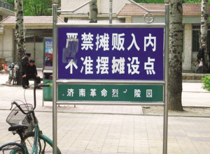 攝 | 主辦方將英雄紀(jì)念碑前的小廣場(chǎng)劃分為一個(gè)個(gè)展位,濟(jì)南市烈士陵園竟然成了一次又一次展銷(xiāo)會(huì)的舉辦場(chǎng)所。嘈雜的會(huì)場(chǎng)淹沒(méi)了“請(qǐng)勿大聲喧嘩”的提示語(yǔ),熙熙攘攘的喧鬧破壞了陵園內(nèi)莊嚴(yán)肅穆的氣氛。試問(wèn)主辦方,如何面對(duì)長(zhǎng)眠于此的英烈們的在天之靈? 濟(jì)南市烈士陵園位于英雄山南麓和五里山西麓。陵園中部建有革命烈士骨灰堂和事跡陳列室,陵園南部是烈士墓地,建有中國(guó)共產(chǎn)黨一大代表、山東地方黨組織創(chuàng)始人之一王盡美和早期中共山東省委書(shū)記劉謙初烈士的陵墓。濟(jì)南戰(zhàn)役中犧牲的有名烈士786人、無(wú)名烈士716人也安葬于此。 3月11日至18日,在革命烈士陵園內(nèi)舉行了第五屆齊魯民俗藝術(shù)博覽會(huì)——奇石藝術(shù)大展。本次博覽會(huì)由濟(jì)南市文化局主辦,濟(jì)南市中天展覽有限公司承辦,吸引了來(lái)自全國(guó)20多個(gè)省、市、自治區(qū)的收藏家和藝術(shù)品經(jīng)銷(xiāo)商。博覽會(huì)每個(gè)展位收費(fèi)700—800元不等,現(xiàn)場(chǎng)人來(lái)人往,有的參展商還搞起了現(xiàn)場(chǎng)拍賣(mài)。原本寫(xiě)著“嚴(yán)禁攤販入內(nèi),不準(zhǔn)擺攤設(shè)點(diǎn)”的警示牌被一幅“打熱水請(qǐng)到組委會(huì)”的通知遮擋了起來(lái)。眾多奇石、瓷器、古玩攤位將原本安靜的烈士陵園變成了嘈雜、擁擠的集貿(mào)市場(chǎng)。
