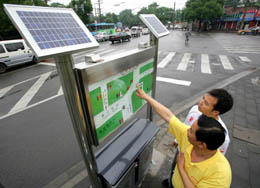 當(dāng)日,北京東城區(qū)環(huán)衛(wèi)局新設(shè)立的太陽能公廁指示牌在景山前街投入使用。這種指示牌采用太陽能供電,夜晚自動點(diǎn)亮,遇到陰天也能正常使用兩到三天。