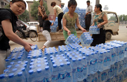 5月30日,無錫個體商戶正在搬運從上海調來的純凈水,準備出售。