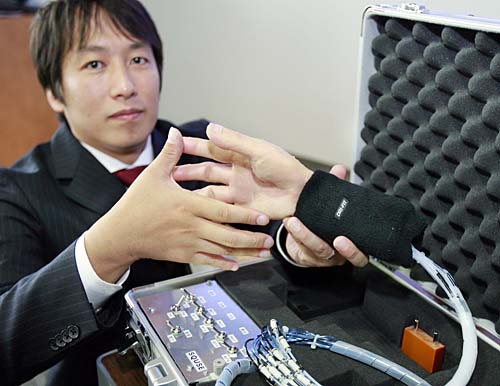 6月7日,機器人制造商Squse的負責人清水干雄(音譯)在日本首都東京和一只機械手握手。這只機械手由23塊氣動“肌肉”驅動,可以做出抓捏的動作。Squse公司開發(fā)出的這種機械手可以幫助手臂有殘疾的人士。