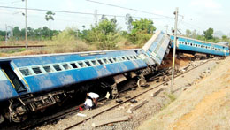 6月12日,鐵路工人在印度安得拉邦維沙卡帕特南附近的列車(chē)出軌現(xiàn)場(chǎng)勘察。一列印度特快列車(chē)在此發(fā)生事故,10節(jié)車(chē)廂出軌,造成4人死亡,60余人受傷。