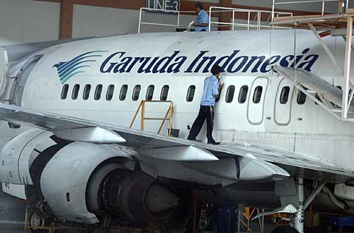 5日,印度尼西亞工人在首都雅加達的一個飛機維修廠檢修一架大型客機。歐盟委員會6月28日頒布禁令,禁止所有印度尼西亞航空公司航班進入歐盟成員國。同時遭禁的還有俄羅斯、烏克蘭和安哥拉的部分航空公司航班。歐盟委員會官員說,出臺禁令是因為那些航空公司無法保證航班飛行安全。