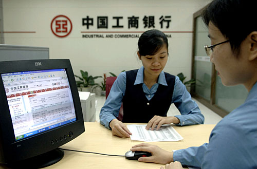 7月16日,中國工商銀行海口瓊泰支行工作人員在為客戶辦理國債業務。財政部于當日起發行總規模為383.8億元的2007年第十一期記賬式國債。本期國債為固定利率附息債,期限3年,經投標確定的票面年利率為3.53%。
