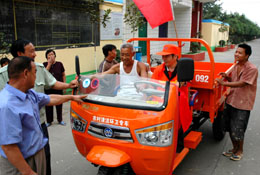 當日,河南省濟源市為138個試點村發(fā)放的環(huán)衛(wèi)機動三輪車全部到位。從今年6月起,該市開展“農(nóng)村清潔”衛(wèi)生行動,為所有鄉(xiāng)鎮(zhèn)免費配備垃圾清運車輛。