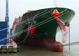 9月8日,我國第一艘擁有完全自主知識(shí)產(chǎn)權(quán)的8530箱超大型集裝箱船在上海交付船東。 這艘名為“新亞洲”號的超大型集裝箱船船體總長335米,設(shè)置九個(gè)貨艙,總裝箱量達(dá)8530標(biāo)準(zhǔn)箱,載重量10.1萬噸,航速25節(jié)。它是目前中國自主設(shè)計(jì)建造完成的最大型集裝箱船。 |