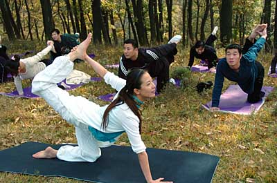 日前,“百人戶外瑜伽體驗”活動在濟南藥鄉(xiāng)國家森林公園舉行。約百名瑜伽愛好者在專業(yè)老師的帶領(lǐng)下練習(xí)瑜伽,在美麗的大自然中舒緩疲勞,陶冶身心。