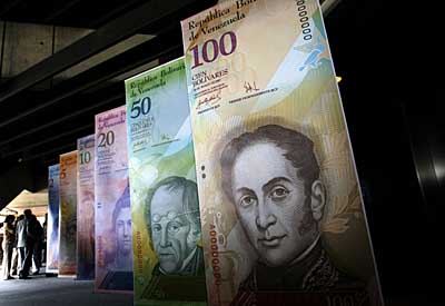 24日,人們在委內瑞拉中央銀行參觀新版貨幣強勢玻利瓦爾的宣傳畫。委內瑞拉央行計劃從2008年1月1日起正式啟用強勢玻利瓦爾。1強勢玻利瓦爾等于1000現行玻利瓦爾。今年10月,委內瑞拉已經開始實行玻利瓦爾和新貨幣強勢玻利瓦爾的雙軌標價。
