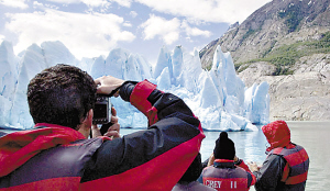 游客在智利一個國家公園拍攝即將消失的冰川。 | 本報綜合報道
