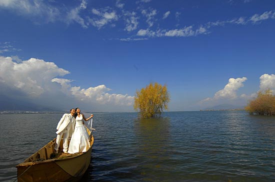 近期,云南大理白族自治州風光旖旎的洱海成為一些情侶拍攝婚紗照的外景地。