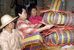 1月21日,瓊海市民選購菜籃子。隨著塑料袋在市場(chǎng)上被限制使用,傳統(tǒng)的菜籃子銷售趨旺。在海南省瓊海市嘉積中心市場(chǎng)的兩家經(jīng)銷竹器的商店里,每天前來購買小菜籃的市民漸漸增多。
