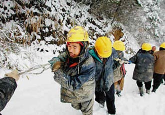 在合肥忙完搶修安排和物資供應準備的安徽送變電公司總工程師薛慧君,沒來得及休息,又帶領(lǐng)設(shè)計及相關(guān)技術(shù)人員冒雪來到搶修現(xiàn)場對搶修方案進行核實優(yōu)化。 “由于運輸作業(yè)面十分狹窄,物資無法一次性運輸?shù)轿唬苯佑绊懙綋岆U進度,而且根據(jù)目前的氣象信息分析看,后續(xù)幾天大別山區(qū)仍有較大降雪,惡劣天氣將使搶險難度進一步加大。”薛慧君說。 “相信兩周左右能夠全部完成搶修,爭取在春節(jié)前恢復送電。”他說。