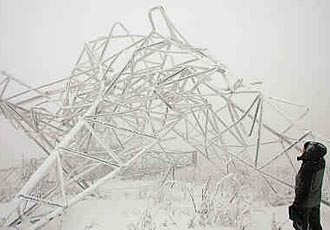 “4座鐵塔已經(jīng)被擰成麻花狀,完全不能用了。”21日,正在現(xiàn)場進行搶修的工作人員對記者說。 安徽大別山區(qū)連續(xù)8天的大降雪,造成三峽電力外送華東的大動脈——500千伏宜(湖北宜昌)華(上海華新)直流輸電線路覆冰嚴重。 1月17日8時25分,位于大別山區(qū)腹地的宜華直流輸電線路#1146—#1153耐張線路段不堪冰雪的重負,4座鐵塔及線路嚴重受損、倒塌。這一電路因此中斷。 險情發(fā)生后,國家電網(wǎng)公司在第一時間派出搶險協(xié)調(diào)小組趕赴安徽。安徽省電力公司及所屬超高壓公司、送變電公司等基層單位立即啟動一級應急預案。 “事故發(fā)生的主要原因是出事線路段覆冰太厚。”安徽送變電公司現(xiàn)場搶修總指揮余偉介紹說,這段輸電線路目前的冰雪覆蓋厚度平均達到了40—50毫米,個別地方覆冰厚度達到60毫米。而按安徽省的氣候條件,線路設(shè)計的抵御覆冰厚度僅為10—20毫米。