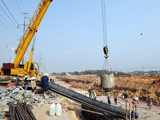 記者從廣西壯族自治區交通廳獲悉,2008年廣西將新增建設農村公路7000余公里,通過多種方式籌措資金,解決農村公路養護難問題,實現“有路必養”。圖為施工人員在廣西欽州市正在建設的農村公路現場施工。