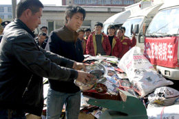 4月20日,工作人員搬運將要銷毀的侵權盜版及非法出版物。當日,山西省舉行2008年全省統一集中銷毀侵權盜版及非法出版物活動,現場共銷毀侵權盜版及非法出版物66萬余件。