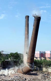 7月5日,河北邢臺方圓集團內(nèi)2座煙囪被拆除。當日,河北邢臺市環(huán)保等部門對方圓集團內(nèi)2座煙囪實施拆除。為提高環(huán)境質(zhì)量,今年邢臺市環(huán)保部門計劃對全市100座鍋爐煙囪進行拆除,現(xiàn)已拆除68座。