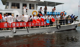 當日,2008年中俄邊境水域漁業資源增殖放流活動在中俄界河黑龍江黑河段舉行,15萬尾鱘鰉魚苗和100萬尾黑龍江野鯉魚苗放流黑龍江。