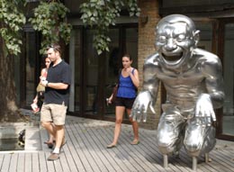 7月13日,幾名外國游客在北京798藝術區游覽。隨著奧運會的臨近,位于北京市城東大山子的798藝術區迎來越來越多的中外游客,藝術區已于7月8日正式啟動奧運接待工作。