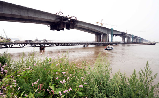 這是全線合龍的松花江大橋(8月7日攝)。近日,哈爾濱繞城公路東北段的松花江大橋全線合龍。松花江大橋是哈爾濱繞城公路的重要組成部分,該橋2005年5月開工建設,全長2324.92米,總投資3.2億元,預計年內可全部完工。該橋建成后,牡丹江等方向的車輛不必經過哈爾濱市區就可直接開往長春等方向。