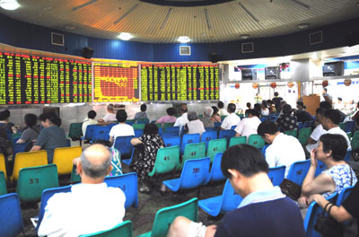 8月18日,滬深股市雙雙暴跌。股民在重慶一家證券營業部關注股市行情,場內被一種憂慮情緒籠罩著,去年股指高漲時的人氣已不復存在。新華社記者:周衡義