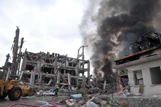 8月26日,救援在緊張進行。當日6時45分,位于廣西宜州市郊的廣西維尼綸集團有限責任公司(簡稱廣維)有機車間發生一起爆炸事故。截至15時40分,已有5人死亡,醫院收治傷員55名,尚有14人失去聯系。目前火勢已得控制,但仍未完全撲滅。