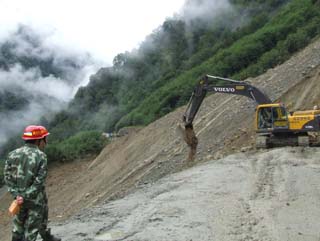 9月16日,武警官兵在搶險。當日,川藏公路因泥石流和山體滑坡造成交通中斷。由于近期連續降雨,川藏公路波密縣境內的“102滑坡群”發生大型泥石流,并造成山體垮塌,覆蓋路面100多米。保守估計需三天時間才能搶通。