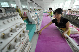 10月20日,江西恩達家紡有限公司的工人在夏布繡花生產線上工作。近年來,這家公司得到新余農村合作銀行的貸款扶植,由一家小企業發展成為全國麻類產品出口50強企業。江西新余農村合作銀行成立以來,將吸收的存款全部用于支持地方經濟發展。兩年來,該行累計發放貸款53億元,占全市農戶小額信用貸款和下崗再就業小額貸款100%、農業貸款90%以上、中小企業貸款80%以上。