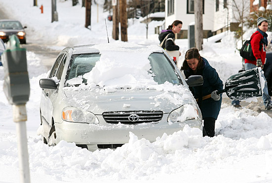 22日,在加拿大東部新斯科舍省的哈利法克斯,一名婦女鏟除汽車附近的積雪。哈利法克斯剛剛降下了今冬第一場暴風雪,給當地居民的生活造成極大不便。新華社/路透