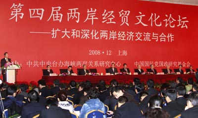 12月21日,第四屆兩岸經貿文化論壇在上海閉幕。中共中央政治局常委、全國政協主席賈慶林和中國國民黨主席吳伯雄出席閉幕式。