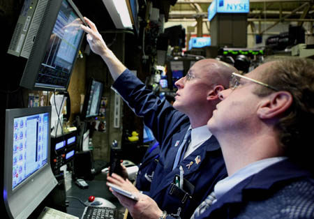 2月10日,交易員在美國紐約證券交易所工作。當日,美國參議院通過了總額8380億美元的經濟刺激計劃,財政部也公布修改后的金融救援方案,但是上述消息并沒有緩解市場投資者對美國經濟陷入深度衰退的擔心,有關救助銀行業措施的不確定性導致投資者拋售金融股,紐約股市三大股指全線暴跌4%以上。