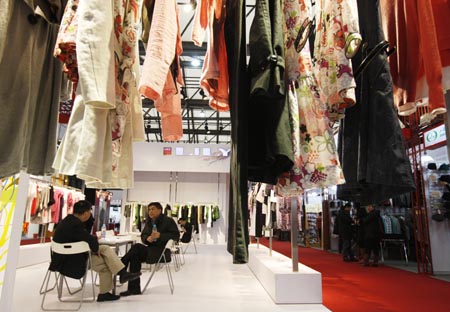 3月1日,幾位客商正在一家服裝展臺內(nèi)洽談業(yè)務(wù)。當(dāng)日,為期5天的中國華東進(jìn)出口商品交易會在上海新國際博覽中心拉開帷幕,本屆展會展覽面積10.35萬平方米,設(shè)標(biāo)準(zhǔn)展位5312個(gè),參展企業(yè)3500多家。