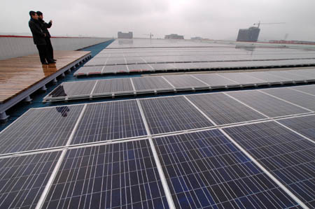 合肥太陽能光伏電站的光伏陣列(2009年3月2日攝)。3月1日,由合肥陽光電源有限公司自主建設的一座太陽能光伏電站在安徽合肥成功并網發電。該電站總裝機容量500千瓦,每年可發電60多萬千瓦時。