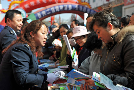 3月29日,稅務人員(左)在銀川市街頭宣傳講解稅收政策。 當日,寧夏第18個全國稅收宣傳月活動在銀川正式啟動。活動月期間,寧夏稅務系統將通過稅法進校園、進社區,舉辦稅收知識競賽,表彰高信用等級納稅人等活動,宣傳稅收在經濟、社會發展中的地位,增強社會各界對稅收工作的理解和支持。