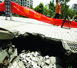 7月1日清晨,杭州市飛云江路鳳凰南苑高層住宅區(qū)里的很多居民先后發(fā)現(xiàn)24層住宅樓前發(fā)生約十平方米坍塌,留下深約一米的大坑。開發(fā)單位杭州市房地產(chǎn)聯(lián)合開發(fā)總公司工程部有關(guān)負(fù)責(zé)人2日在接受記者采訪時(shí)表示,他們正在和專業(yè)鑒定機(jī)構(gòu)簽署協(xié)議,委托鑒定,給小區(qū)居民一個(gè)權(quán)威說法。新華社發(fā) |