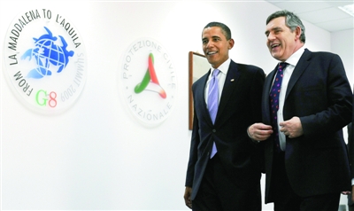 7月8日,在意大利中部城市拉奎拉,美國總統(tǒng)奧巴馬(左)與英國首相布朗一起抵達八國峰會主會場。當日,八國集團領導人在拉奎拉舉行工作午餐,討論世界經濟問題,這標志著為期三天的八國集團首腦會議正式拉開帷幕。