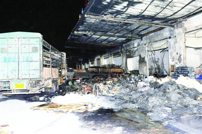 9月3日凌晨拍攝的化學(xué)品爆燃事故現(xiàn)場(chǎng)。9月2日下午,山東省臨沂市蘭山區(qū)金蘭物流城F3區(qū)發(fā)生一起由裝載化學(xué)物品的貨車在卸車過程中引發(fā)的意外爆燃事故,共造成18人死亡、10人受傷。事故原因正在調(diào)查中。