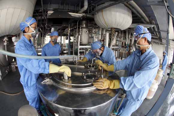 沂蒙山區(qū)以紅色根據地聞名遐邇,如今,一個“制藥航母”———新時代藥業(yè)有限公司正在這里鍛造,成為當地又一張名片。圖為工人在新時代藥業(yè)車間工作。