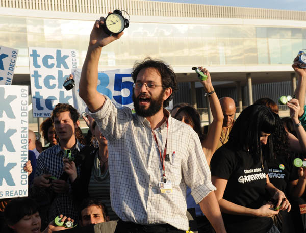 11月2日,在西班牙海濱城市巴塞羅那,環保人士手持鬧鐘參加“千鐘齊鳴”活動。2009年聯合國第五次氣候變化談判2日在巴塞羅那開幕。