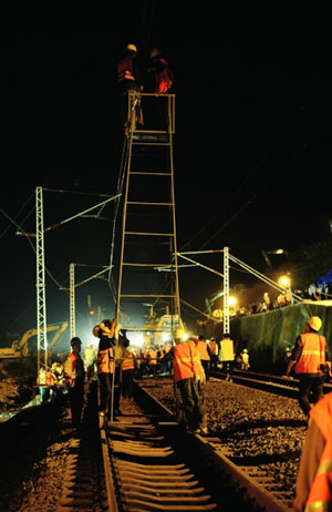 鐵道部消息,經過鐵路部門、地方政府和當地駐軍、武警、公安民警等全力搶修,因山體滑坡中斷的滬昆鐵路已于當日21時15分恢復正常行車。