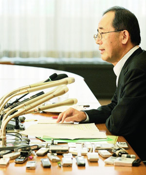 8月10日,日本中央銀行——日本銀行總裁白川方明在東京舉行的新聞發布會上講話。