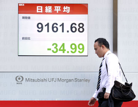 受日元對(duì)美元匯率上漲等因素影響,17日東京股市繼續(xù)走低。當(dāng)日收盤時(shí),日經(jīng)股指下跌34.99點(diǎn),收于9161.68點(diǎn),為去年11月27日以來的最低。