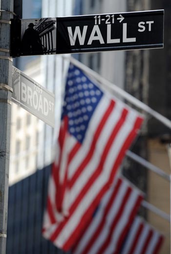 由于歐盟通過了一項總額為7500億歐元的救助機制。紐約股市大幅上漲。新華社發 |