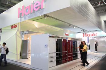 在2010IFA中展出的海爾卡薩帝彩晶六門、法式對開門冰箱成為了焦點。新華社記者 胡小兵/攝 |
