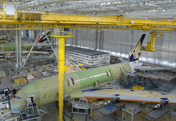 產(chǎn)品、人才、合作--空客的“起飛”之路。這是2007年拍攝的空客A380總裝廠內(nèi)的一架正在組裝的A380客機(jī)。新華社發(fā) |