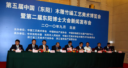 第五屆中國(東陽)木雕竹編工藝美術(shù)博覽會(huì)暨第二屆東陽博士大會(huì)將于今年10月18日至22日在東陽市中國木雕城舉行。 9月8日,由中國工藝美術(shù)學(xué)會(huì)、中國林業(yè)產(chǎn)業(yè)協(xié)會(huì)和中國非物質(zhì)文化遺產(chǎn)保護(hù)中心共同主辦,中共東陽市委、東陽市人民政府、中國工藝美術(shù)學(xué)會(huì)木雕藝術(shù)專業(yè)委員會(huì)、浙江省工藝美術(shù)行業(yè)協(xié)會(huì)、浙江省林業(yè)產(chǎn)業(yè)聯(lián)合會(huì)承辦的《第五屆中國(東陽)木雕竹編工藝美術(shù)博覽會(huì)暨第二屆東陽博士大會(huì)》新聞發(fā)布會(huì)在人民大會(huì)堂浙江廳舉行。東陽市領(lǐng)導(dǎo)及在京相關(guān)單位的主要負(fù)責(zé)人出席了此次活動(dòng)。 東陽市委書記張仲燦首先代表東陽市委市政府作發(fā)布會(huì)致辭,副市長陳軍、朱志杰隨后分別介紹了本次木雕竹編工藝美術(shù)博覽會(huì)以及東陽博士大會(huì)的組織籌備情況。中國林業(yè)產(chǎn)業(yè)協(xié)會(huì)副秘書長石峰發(fā)表了熱情洋溢的講話,在發(fā)布會(huì)最后,張仲燦回答了與會(huì)記者的相關(guān)提問,并熱情邀請大家去東陽走一走,看一看,了解東陽新時(shí)期的發(fā)展和建設(shè)。發(fā)布會(huì)在熱情友好的氣氛中圓滿結(jié)束。 東陽自古有“教育之鄉(xiāng)”與“木雕之都”的美譽(yù),近年來重視高新技術(shù)產(chǎn)業(yè)的發(fā)展,經(jīng)濟(jì)成果更是豐碩。包括橫店影視基地在內(nèi)的一大批著名旅游景點(diǎn)已成為東陽市的新名片。中國(東陽)木雕竹編工藝美術(shù)博覽會(huì)已成功舉辦了四屆,是一個(gè)推動(dòng)木雕竹編工藝美術(shù)產(chǎn)業(yè)交流發(fā)展的有效平臺(tái)。在各界的廣泛關(guān)注、積極參與和大力支持下,博覽會(huì)已成為中國木雕竹編行業(yè)最具規(guī)模的盛會(huì)。