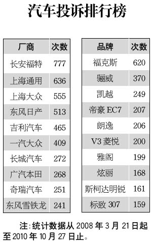 浙江汽車投訴高燒不退 質量問題成投訴焦點