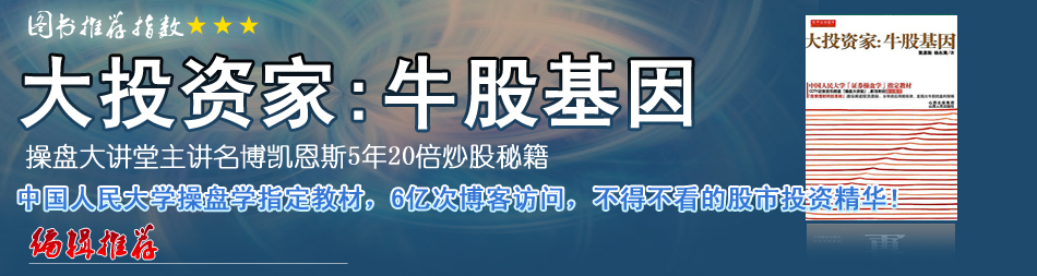 | 凱恩斯在新作《大投資家:牛股基因》中首度披露了其把握大盤趨勢和精選牛股的實戰技術精華,該書為中國人民大學“證券操盤學”指定教材。凱恩斯在新作中分享了三大規律、四項超越技術、十大指標、真假護城河、牛股速查……等一系列獨特投資技術,是近年來難得的一部融投資策略與實戰技術與一體的投資佳作,即是新股民入市前的必讀指南,也是老股民提升技術、開闊格局的進階工具書。 |